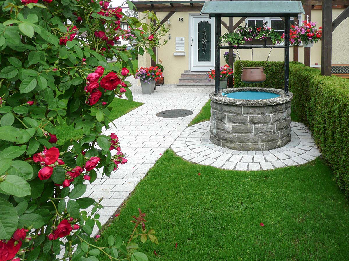Erweitern Sie Ihren Garten mit Natursteinen, Pflaster oder mit Wasseranlagen, wie einem Teich, Pool oder einer Zisterne.
